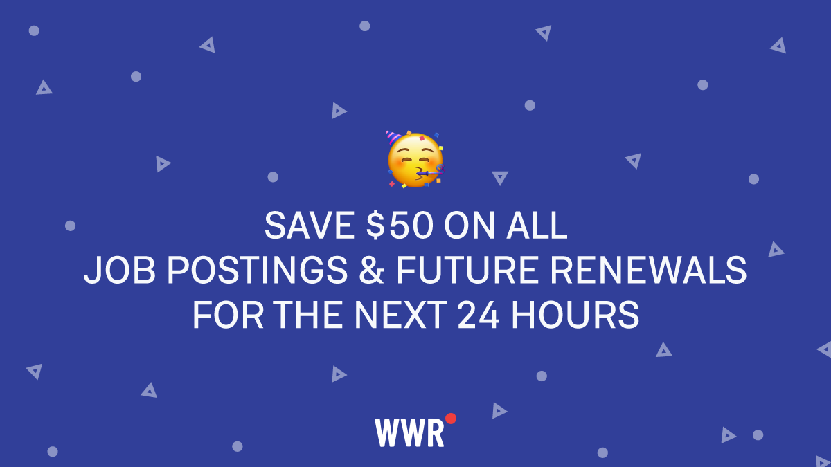 Employers save $50 on all job postings & future renewals for the next 24 hours 🎉 Offer ends Fri. May 24, 2019 @ 11:59 PM PST.